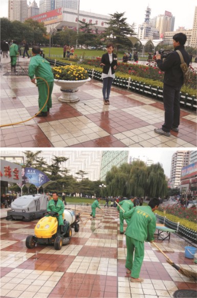 目前全市環(huán)境衛(wèi)生狀況整體良好,相對(duì)第一次,這次“全民洗城”行動(dòng)更規(guī)范化,范圍更擴(kuò)大化、全面化,不僅用灑水車(chē)噴灑車(chē)行道,還用高壓水槍沖洗人行道,用拖布仔細(xì)拖洗廣場(chǎng)地面,確保了市容環(huán)境衛(wèi)生干凈、整潔。