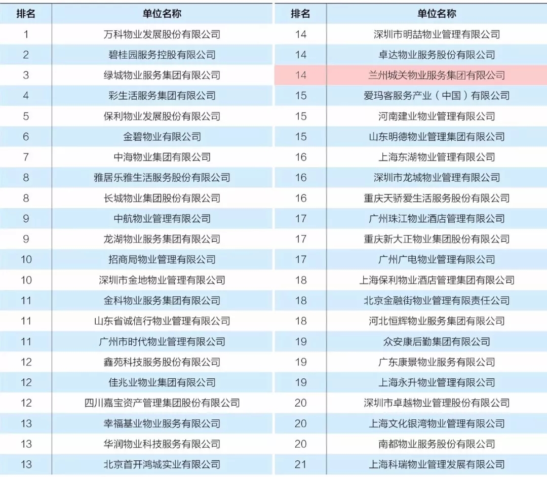 喜訊!城關物業(yè)榮膺全國物業(yè)百強企業(yè)第十四名!