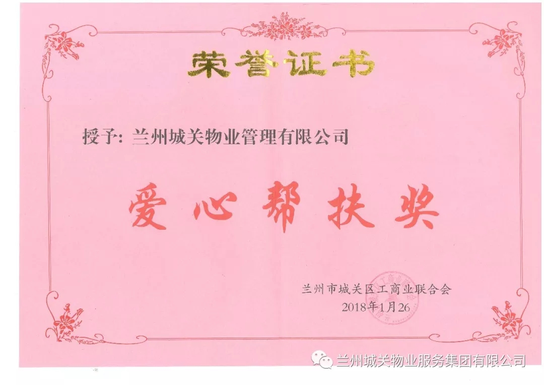 城關(guān)物業(yè)服務(wù)集團(tuán)榮獲“愛心幫扶獎(jiǎng)”