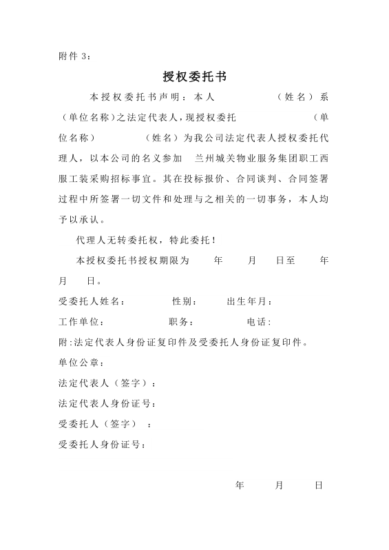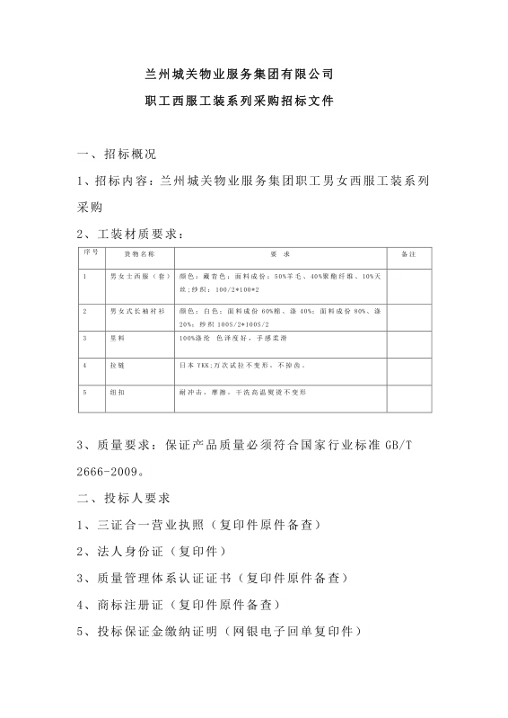 蘭州城關(guān)物業(yè)服務(wù)集團(tuán)有限公司 職工西服工裝系列采購(gòu)招標(biāo)文件