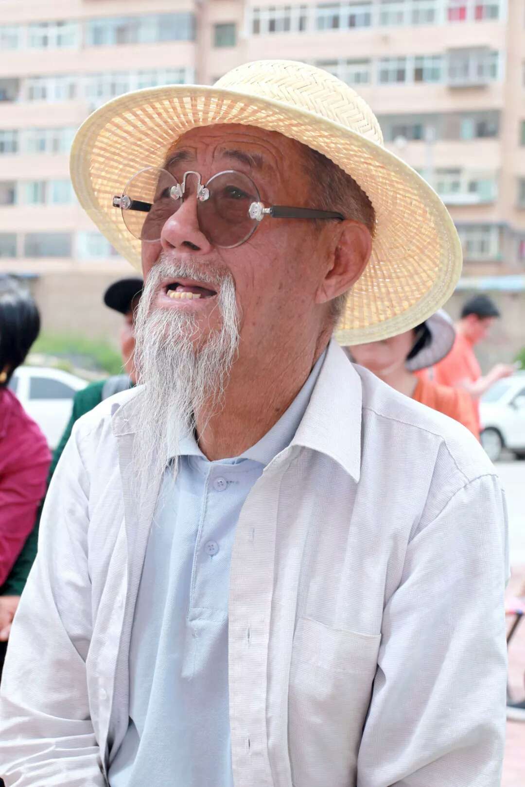 已經(jīng)搬好凳子坐等了。白發(fā)滄桑的老爺爺滿臉期待,