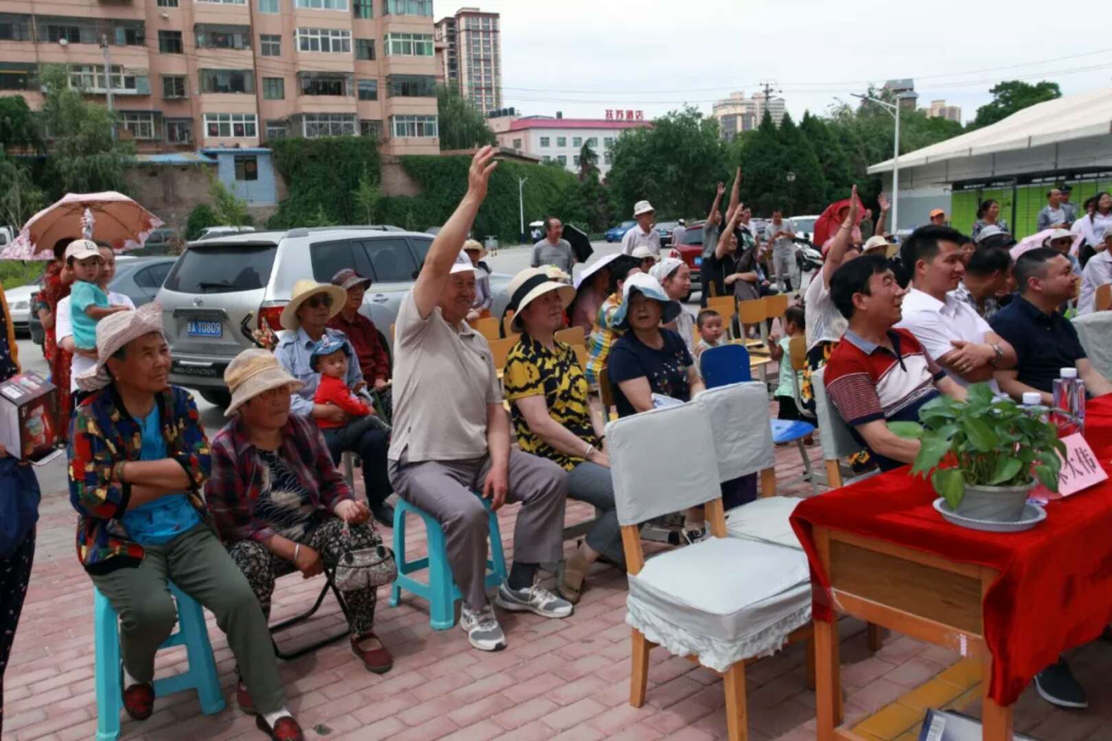 活動期間有獎問答環(huán)節(jié)中,業(yè)主們高舉的手,