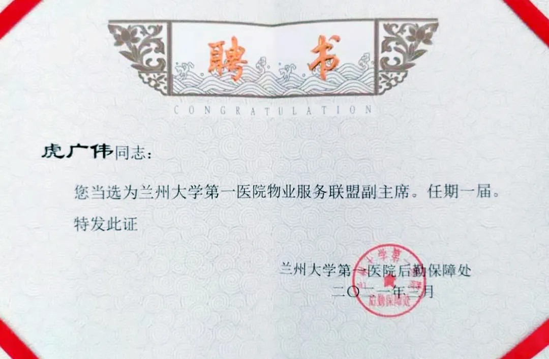 蘭州城關物業(yè)服務集團有限公司蘭大一院項目經(jīng)理虎廣偉