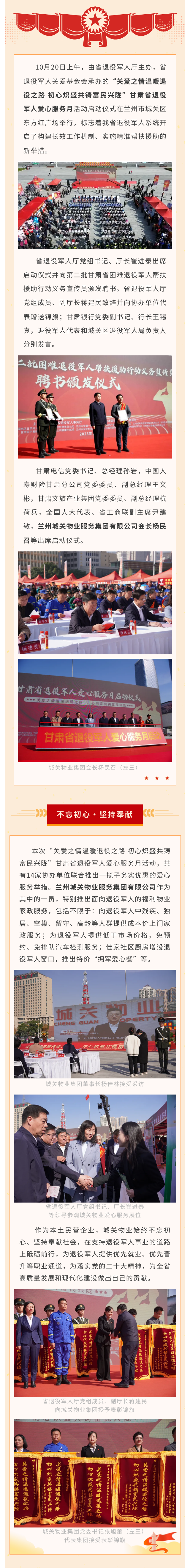 關(guān)愛在心·奉獻(xiàn)于行|城關(guān)物業(yè)集團(tuán)獲省退役軍人廳錦旗表彰